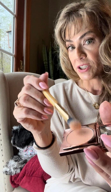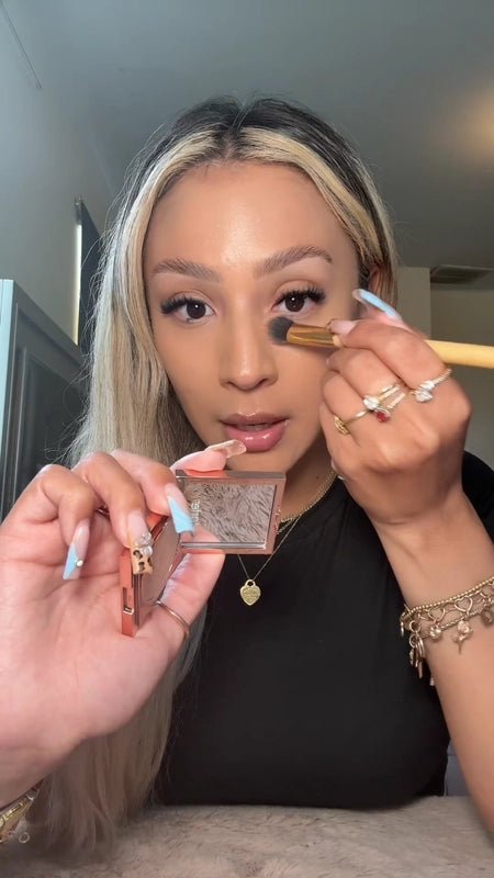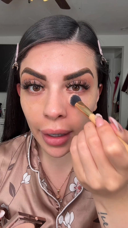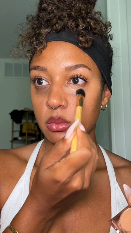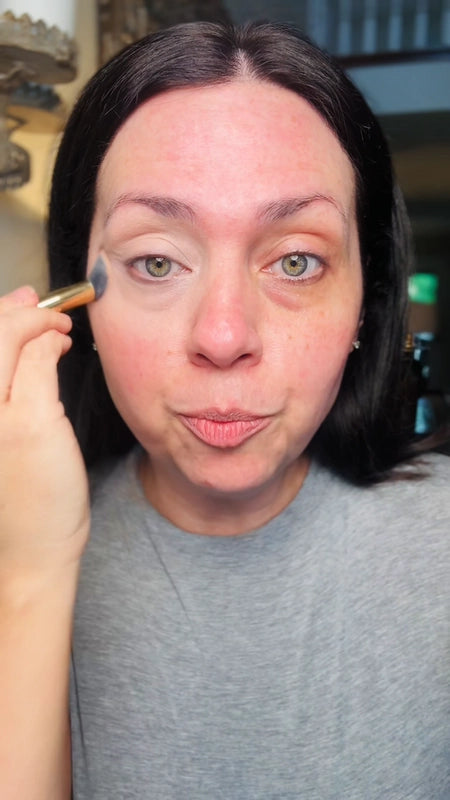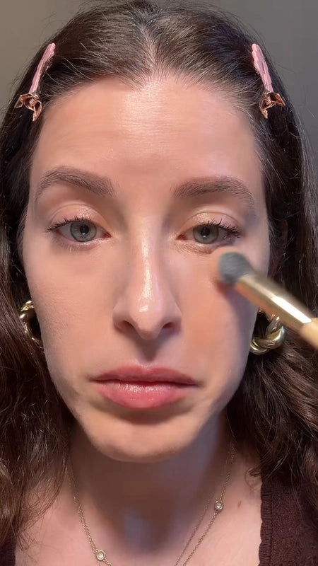 Appliquez une petite quantité sous les yeux et estompez doucement avec le doigt ou un pinceau.